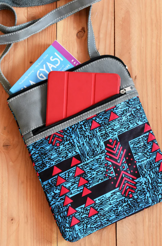 Chitenge Cloth and Gray Leather Cross Body Bag