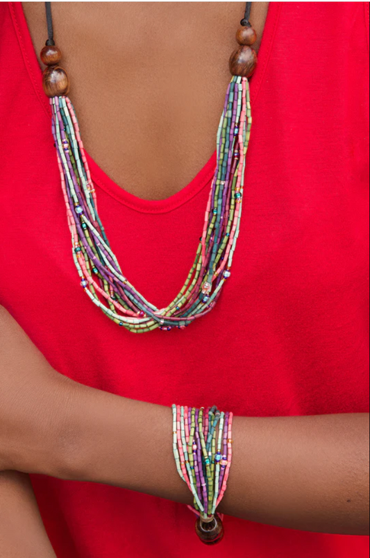 Potpourri Multi-Strand Zulugrass & Acacia Wood Necklace