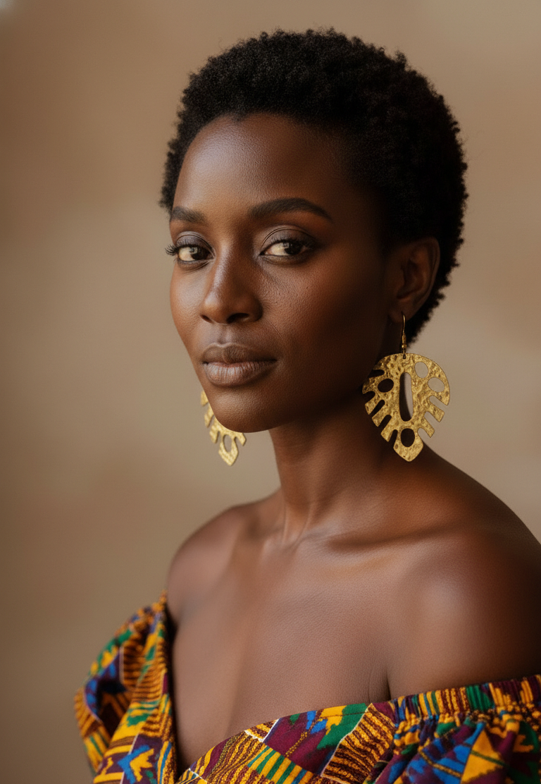 The Brass Canopy Earrings are inspired by the protective beauty of nature — shaped like an abstracted leaf, yet reminiscent of ceremonial masks and ancestral symbolism. Hand-textured brass is cut with intentional openings, allowing light to pass through and dance against the skin.
