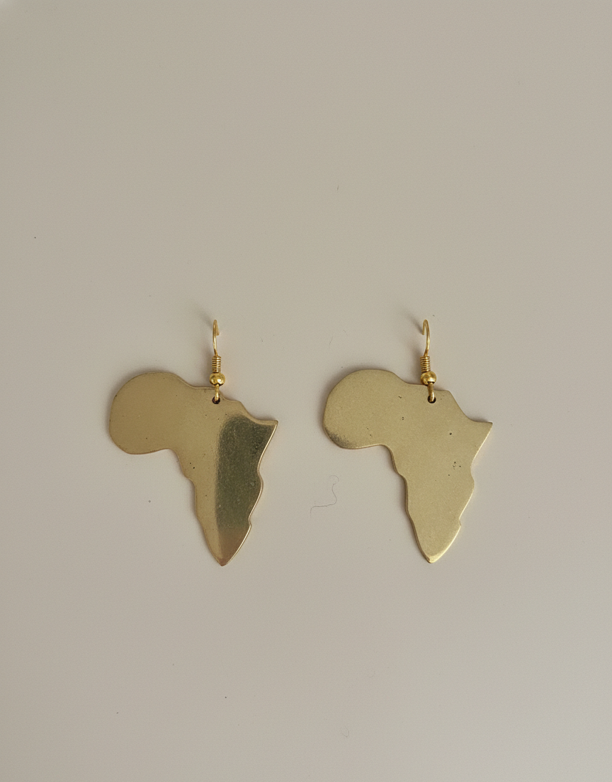Wear your heart on your ear with the Brass Motherland Earrings. These stunning map-of-Africa earrings are crafted from radiant gold-toned brass, offering a powerful visual tribute to the source of all heritage.